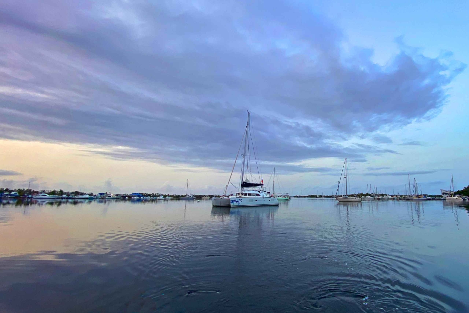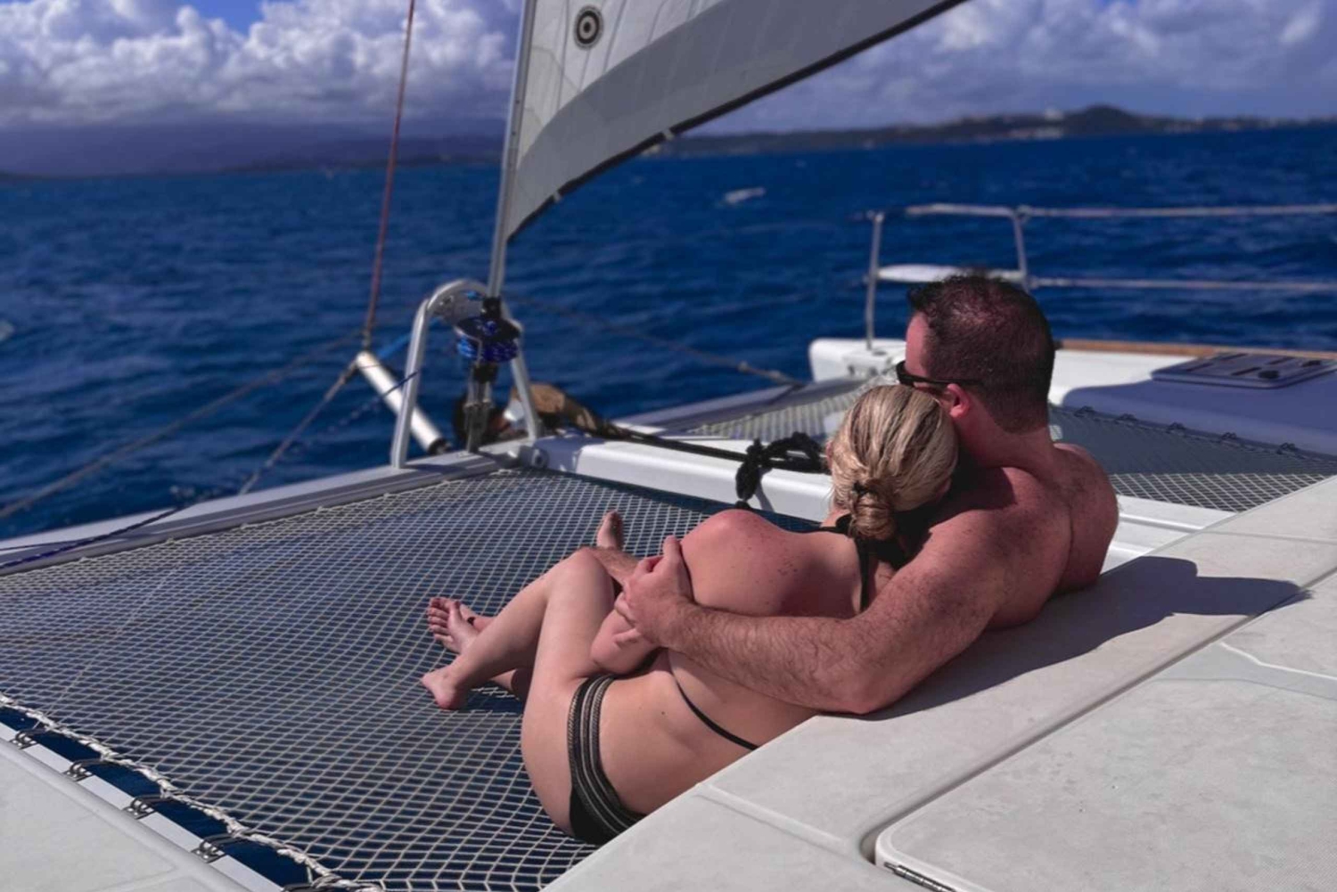 Stig ombord på en katamaran og se den smukke kystlinje ved Fajardo og de afsidesliggende øer i nærheden. Efter en kort sejltur vil kaptajnen kaste anker ved kysten, hvor du kan slappe af på katamaranens trampolin, nyde lækre snacks og drikkevarer eller tage en forfriskende dukkert i havet med den uberørte Palomino- eller Piñeros-ø som smuk kulisse. En 15 minutters sejltur bringer dig tilbage til marinaen efter en mindeværdig og romantisk oplevelse i Det Caribiske Hav.Includes