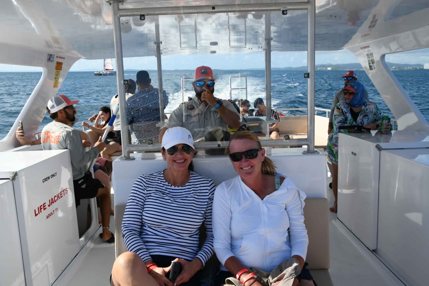 Nyd en 4 timers snorkling og strandtur til Icacos Island og Cordillera Cays-reservatet, og beundr det smukke lokale dyreliv. Kom med en god indstilling og kærlighed til vandlivet Start dagen med at forlade Fajardo og sejl til Icacos på Runaway, den nye 2022 specialdesignede 41-fods motorkatamaran. Bygget til dagcharter, Denne sjove og hurtige båd er designet til at give en glat og behagelig tur, samtidig med at den giver rigelig plads til alle om bord. Du vil finde åbne og skyggefulde områder med komfortable siddepuder og daybeds til din afslapning. Først vil du besøge koralrevene, som har en bred vifte af farvede tropiske fisk og blomstrende koraller, der har været beskyttet siden 1980. Derefter går du videre til det andet stop, hvor du besøger en uberørt strand eller sandbar, hvor du kan svømme, flyde, gå en tur på den hvide sandstrand eller bare slappe af og solbade. Hvis tiden er et problem, er Double Dip turen noget for DIG! Denne 4-timers udflugt giver dig frihed til at vælge mellem en morgen- eller eftermiddagsbådsdag, så du kan nyde din aktivitetsfyldte ferie, mens du er i Puerto Rico... Denne aktivitet er en sjov, sikker og mindeværdig oplevelse for hele familien, som du bare ikke må gå glip af, når du besøger Puerto Rico! Begynd at planlægge din rejse i dag, og forbered dig på at skabe minder for livet på åbent hav!Includes