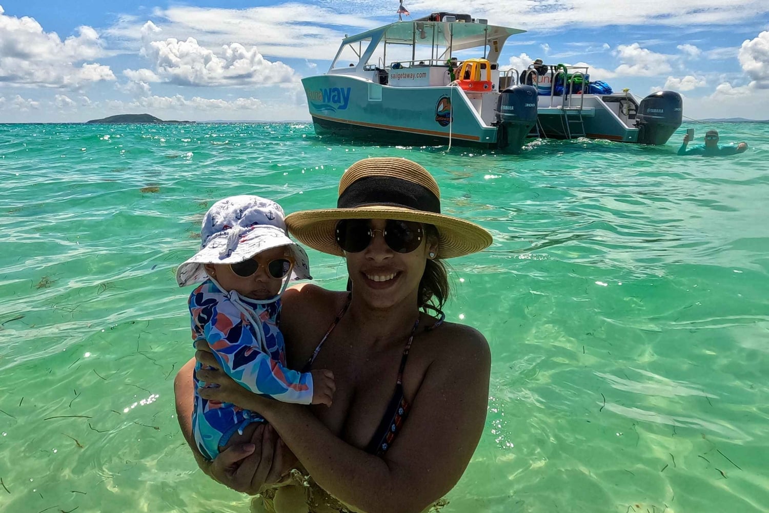 Icacos: Double Dip Power Catamaran Snorkling og strandtur