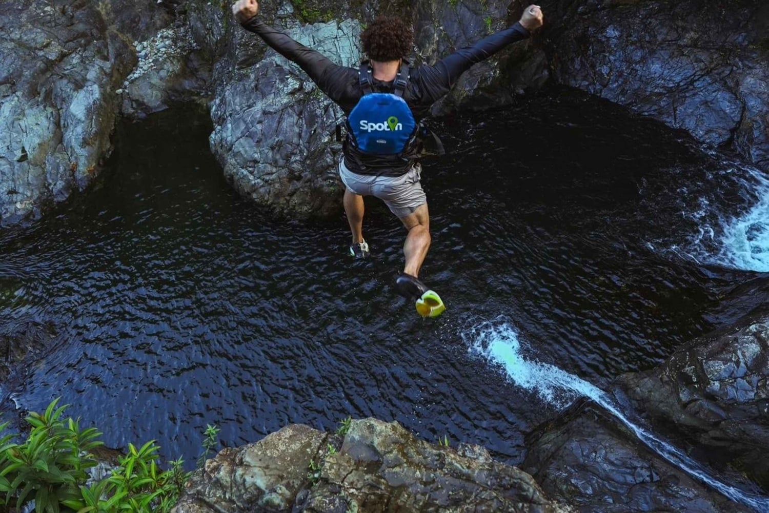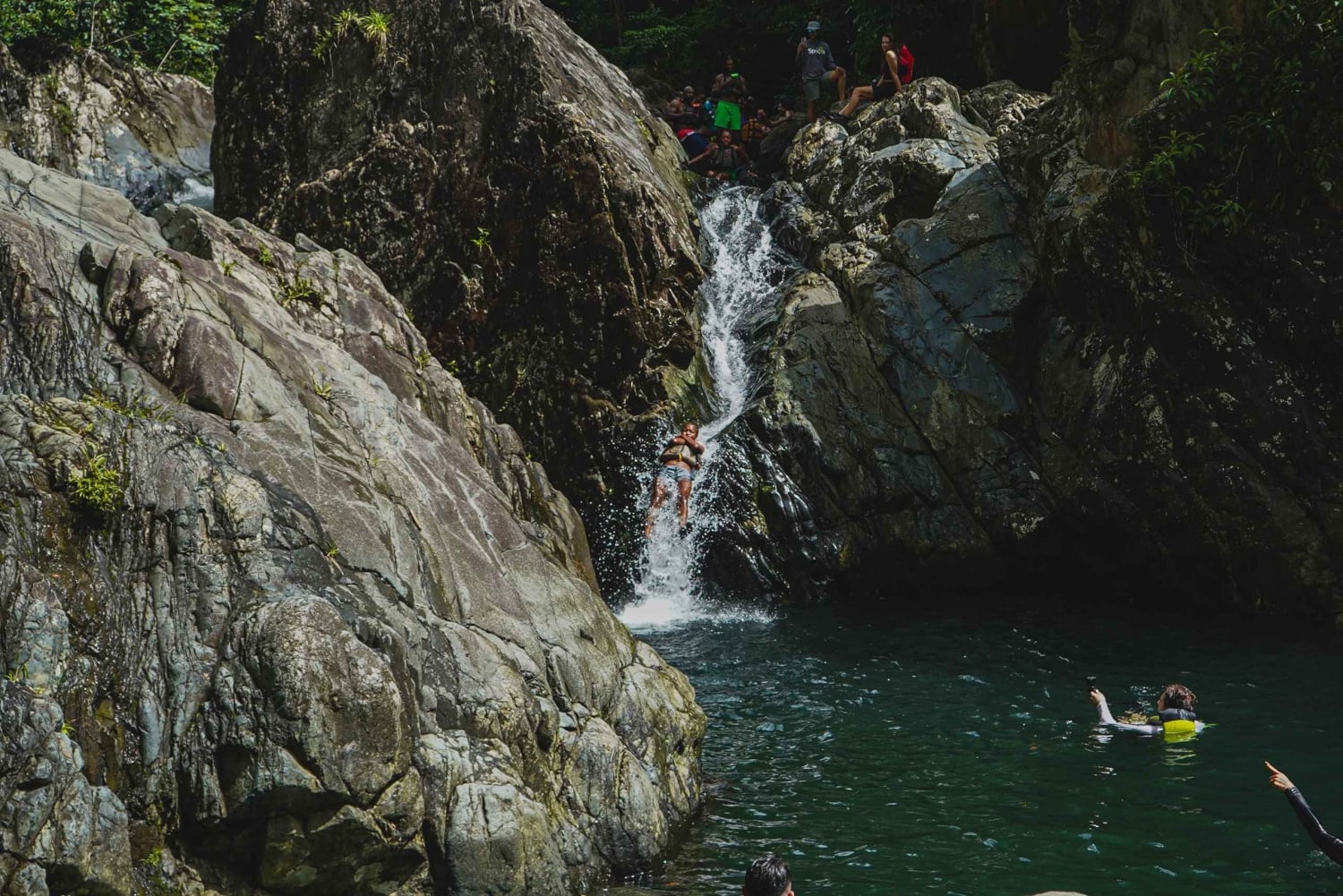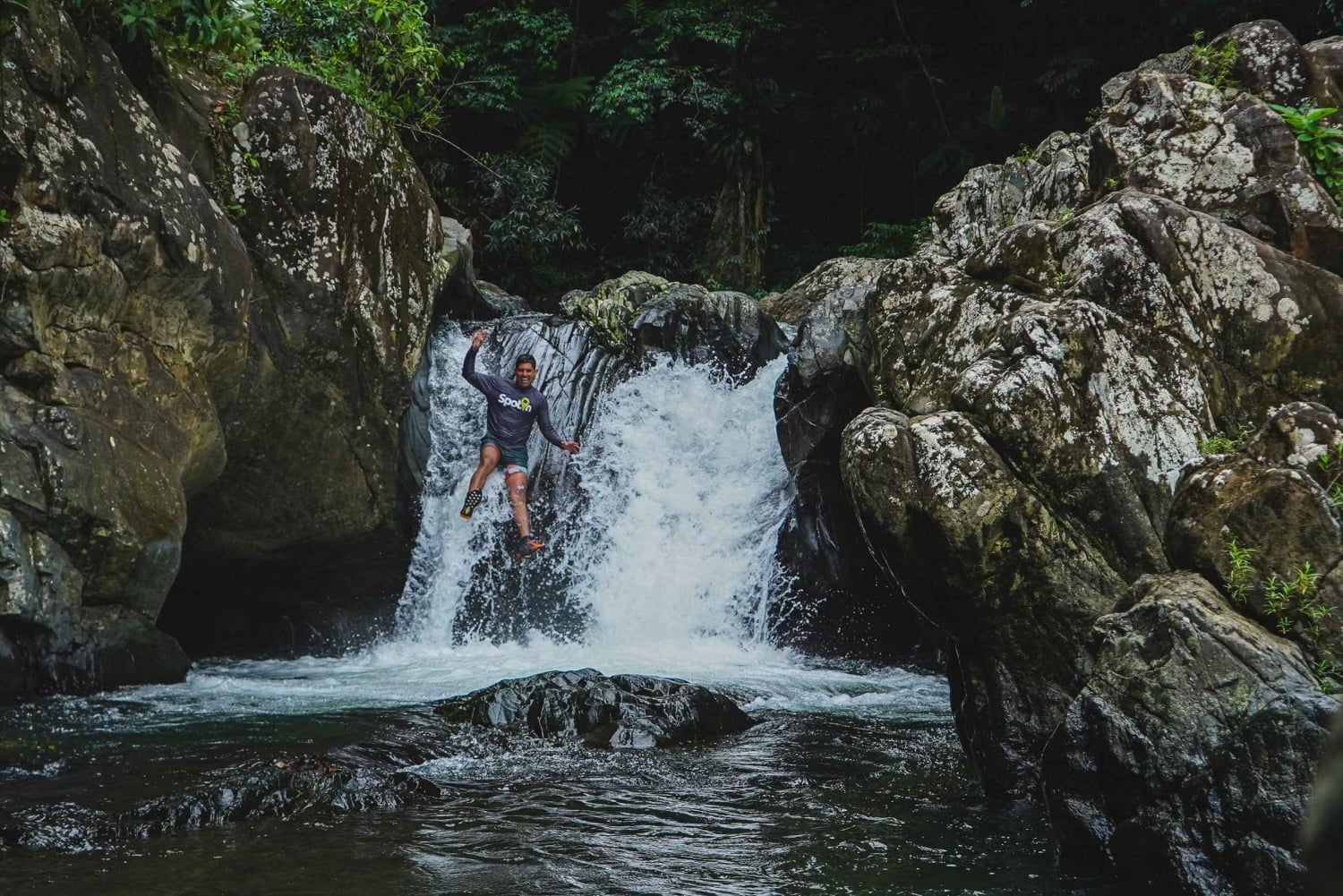 Immerse yourself in the spectacular El Yunque Rainforest as you enjoy a day of guided hiking. Encounter watering holes, rope swinging, and climb a rock water slide. Meet your guide at our predetermined meeting point and follow them into the rainforest in your rented/owned vehicle (Uber/Taxis aren’t allowed). Start your experience with a 30-minute hike in pure forest to the first mineral water watering hole: -swim in 2 waterfalls -watering holes -natural Waterslide -rope swing -multiple cliff jumps -enjoy natural landscape -nature hike Learn all about the rainforest as you go from your guide as you get to know it as a local. Hear historical facts and information about the ecosystem as you go about your trip. Expect a full on adventure, a very muddy trail and pure nature. **Flip flops and crocs not allowed. Closed toed shoes like sneakers, water shoes or hiking sandals with a good grip and a thick sole are the ones you’ll need.** You’ll meet your tour guide at Yagrumo restobar in Fajardo. Use GOOGLE MAPS in order to reach the correct location. From there you will do a short drive to the hiking trail. No Uber/Taxi allowed. Bring shoes you don't mind getting completely muddy and wet. This tour offers an authentic Puerto Rican rainforest experience, blending adventure, education, and natural beauty in one unforgettable day.