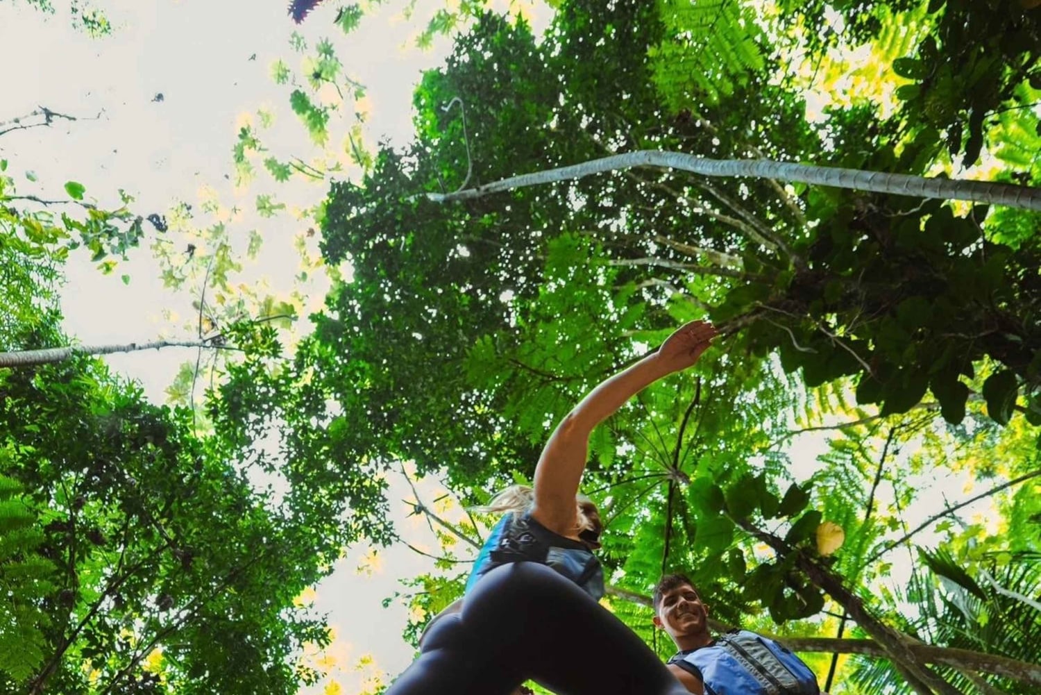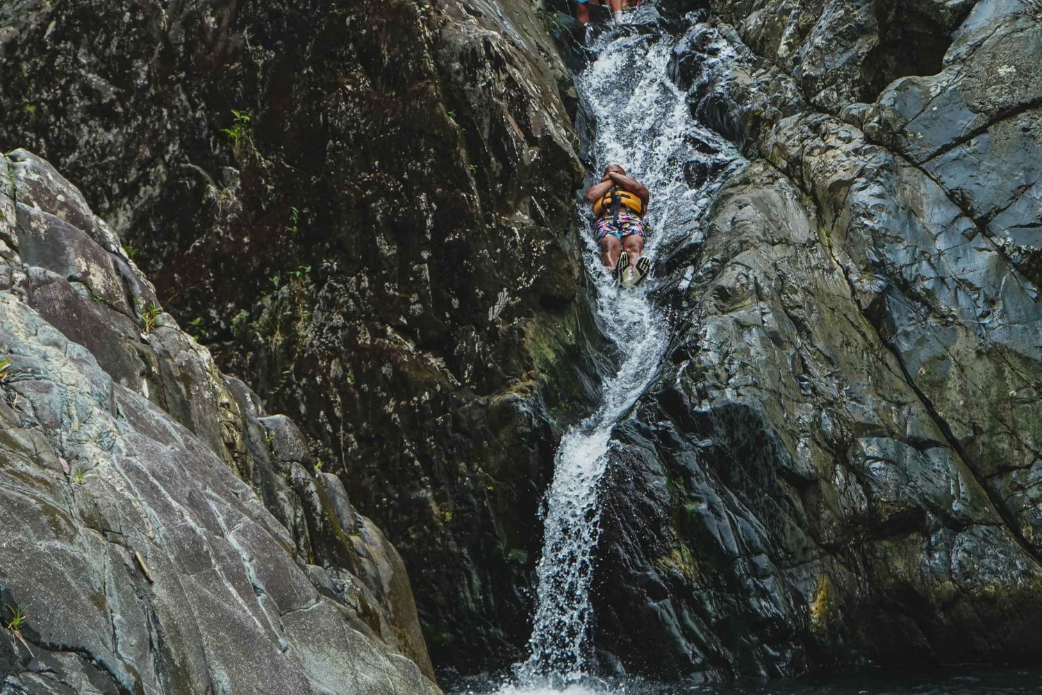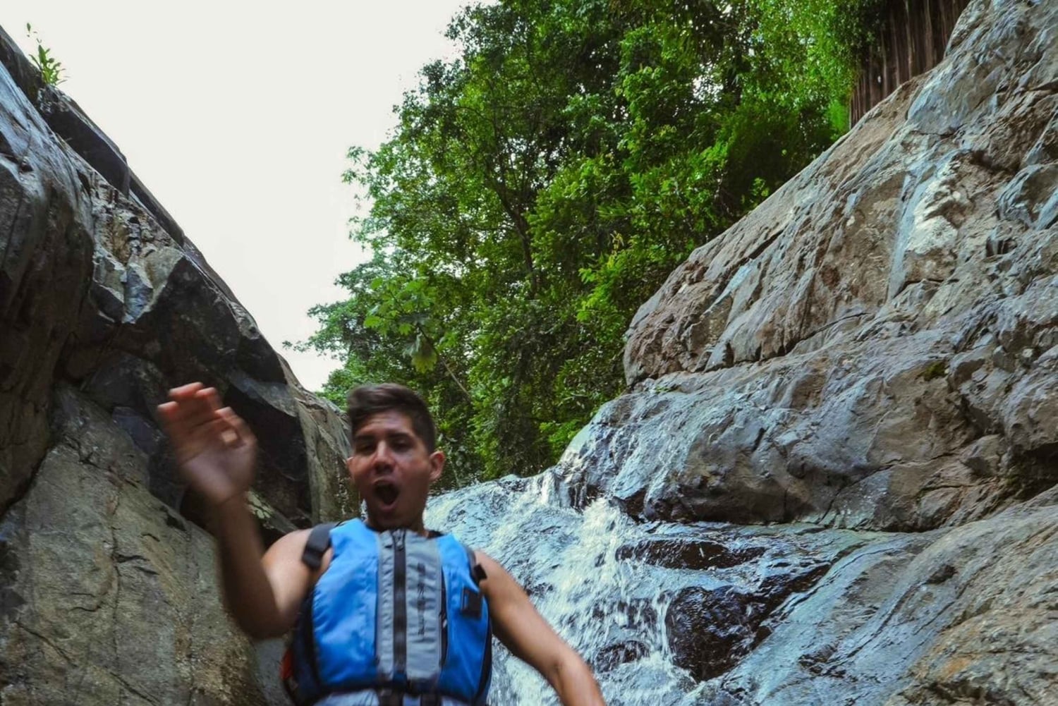 Immerse yourself in the spectacular El Yunque Rainforest as you enjoy a day of guided hiking. Encounter watering holes, rope swinging, and climb a rock water slide. Meet your guide at our predetermined meeting point and follow them into the rainforest in your rented/owned vehicle (Uber/Taxis aren’t allowed). Start your experience with a 30-minute hike in pure forest to the first mineral water watering hole: -swim in 2 waterfalls -watering holes -natural Waterslide -rope swing -multiple cliff jumps -enjoy natural landscape -nature hike Learn all about the rainforest as you go from your guide as you get to know it as a local. Hear historical facts and information about the ecosystem as you go about your trip. Expect a full on adventure, a very muddy trail and pure nature. **Flip flops and crocs not allowed. Closed toed shoes like sneakers, water shoes or hiking sandals with a good grip and a thick sole are the ones you’ll need.** You’ll meet your tour guide at Yagrumo restobar in Fajardo. Use GOOGLE MAPS in order to reach the correct location. From there you will do a short drive to the hiking trail. No Uber/Taxi allowed. Bring shoes you don't mind getting completely muddy and wet. This tour offers an authentic Puerto Rican rainforest experience, blending adventure, education, and natural beauty in one unforgettable day.