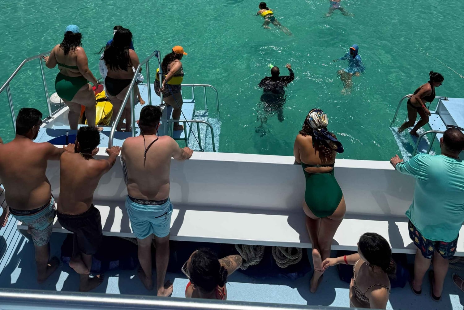 Throughout the day, the bar onboard the catamaran is open for all guests with Piña Coladas, Rum Punch, sodas, iced teas, and juices. A sumptuous lunch is served on board, including fresh fruit, cold cuts, fresh bread, salads, and chips.