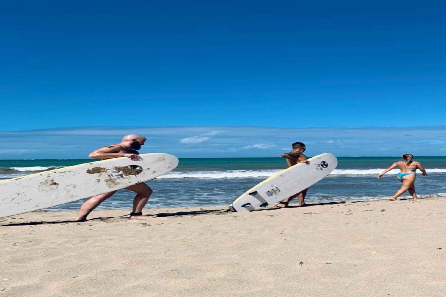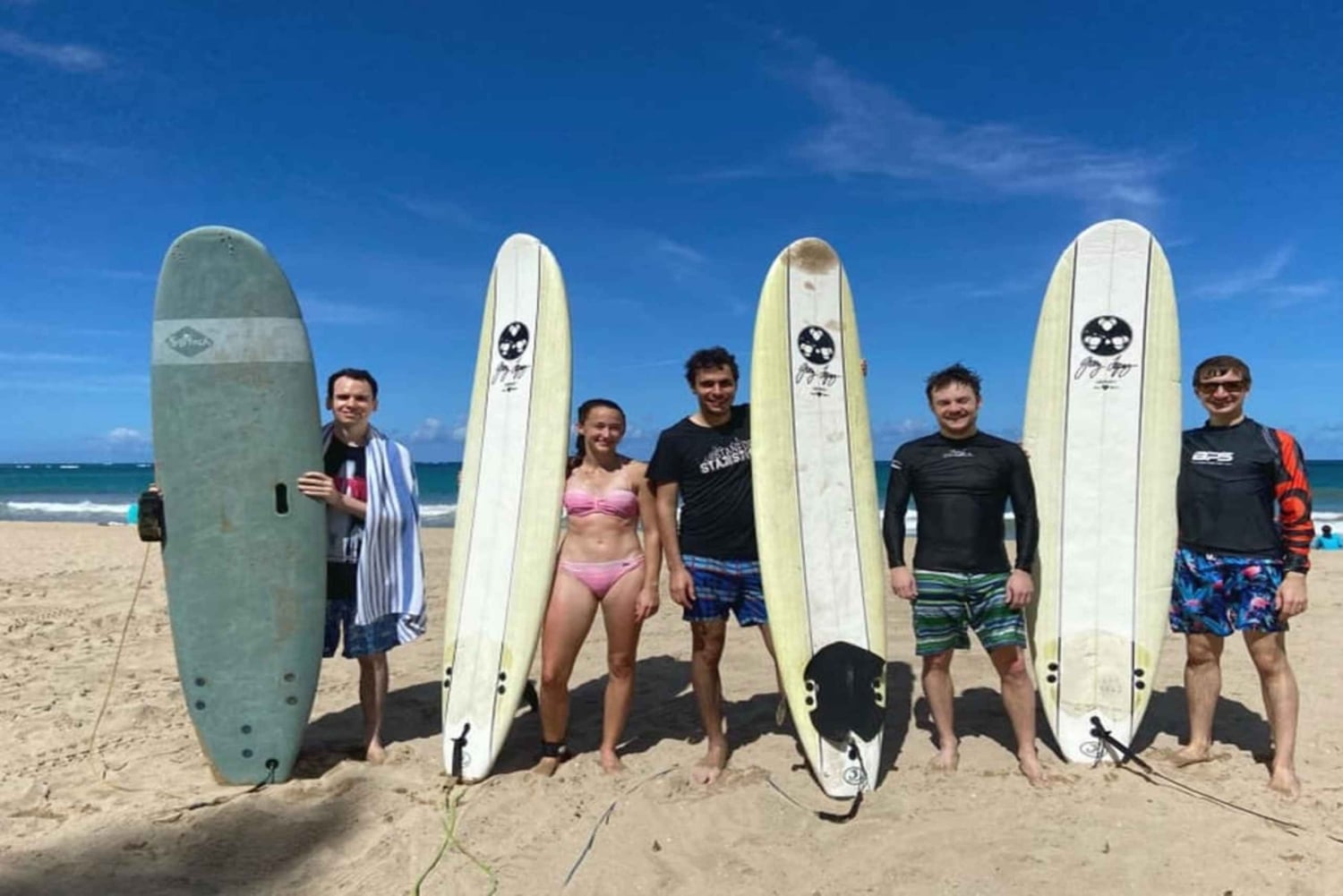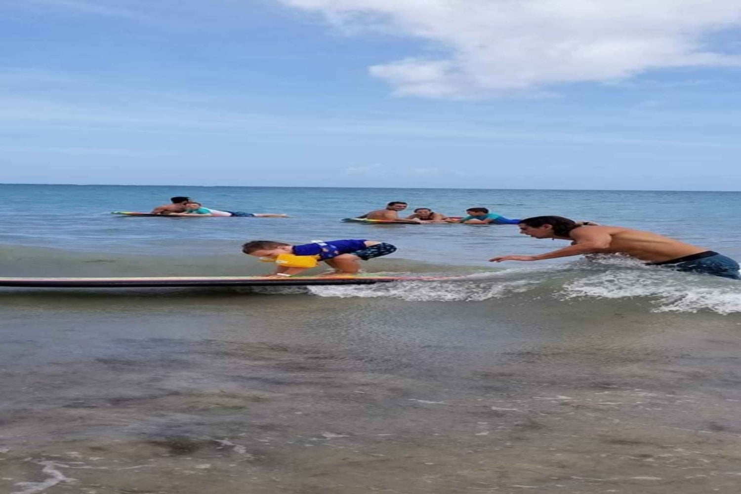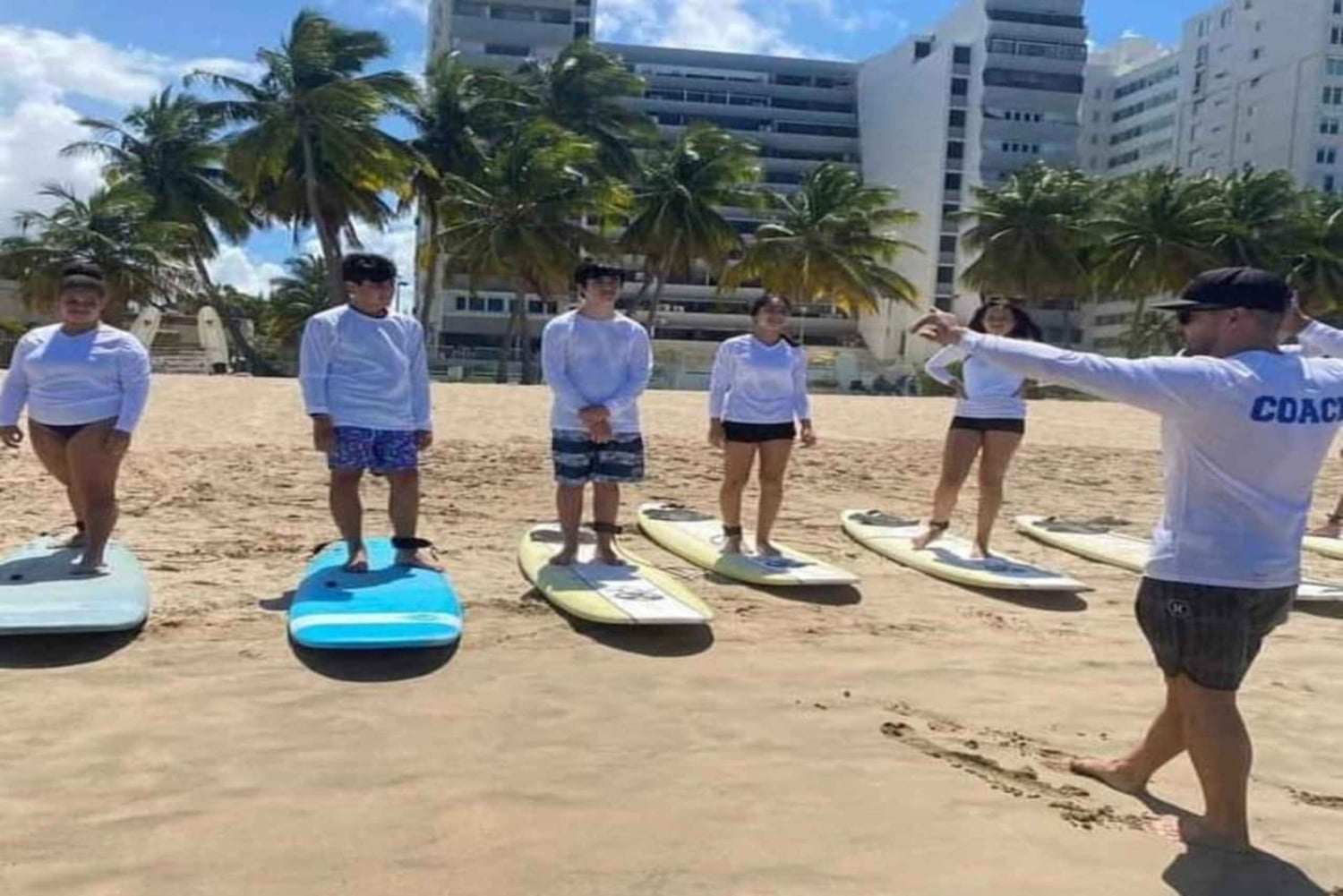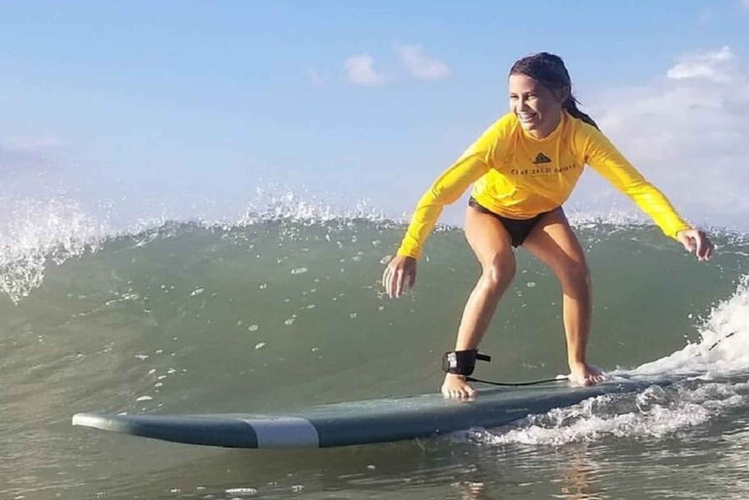 The instructor will reach out to you to confirm which beach to meet at, and what time to meet them there. First you'll have an hour long instruction with your coach. Warming up, learning basic movements, feet placement etc. The Instruction will be on the beach and in the water. Afterwards you will get a one hour board rental where the coach will be in the water placing your board in the best place to catch waves, then pushing your board at the right time into oncoming waves. Continually giving you tips and helping you adjust so you catch multiple waves your first class!