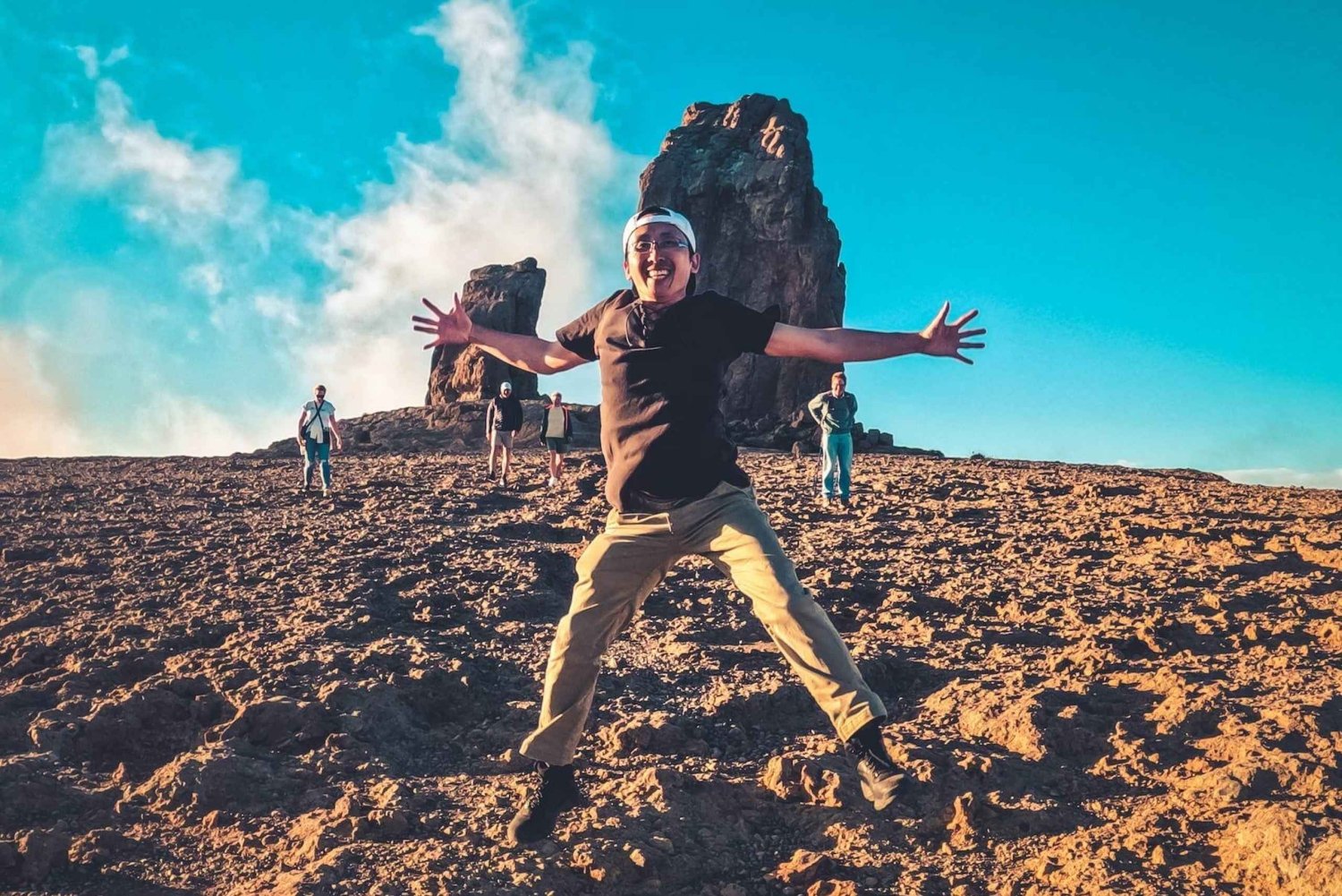 Fall in love with the breathtaking landscapes and geological history of Gran Canaria on a guided tour tailor-made for nature enthusiasts. Kick off your eco-friendly adventure at Pico de Bandama, where you’ll marvel at panoramic views of the island's diverse topography. Trace the island’s volcanic origins as you explore the ancient Caldera of Bandama as your guides bring the island's geological story to life. Discover Cruz de Tejeda, where you can visit local markets and purchase unique products, supporting sustainable practices and local communities. Enjoy an original meal at Tajinaste Restaurant, where seasonal ingredients meet fusion cuisine for a singular culinary experience. The journey continues with a hike to the majestic Roque Nublo, one of Gran Canaria's most iconic natural landmarks and part of a UNESCO World Heritage site, before concluding at Pico de Las Nieves for a serene sunset with sweeping island views.Includes