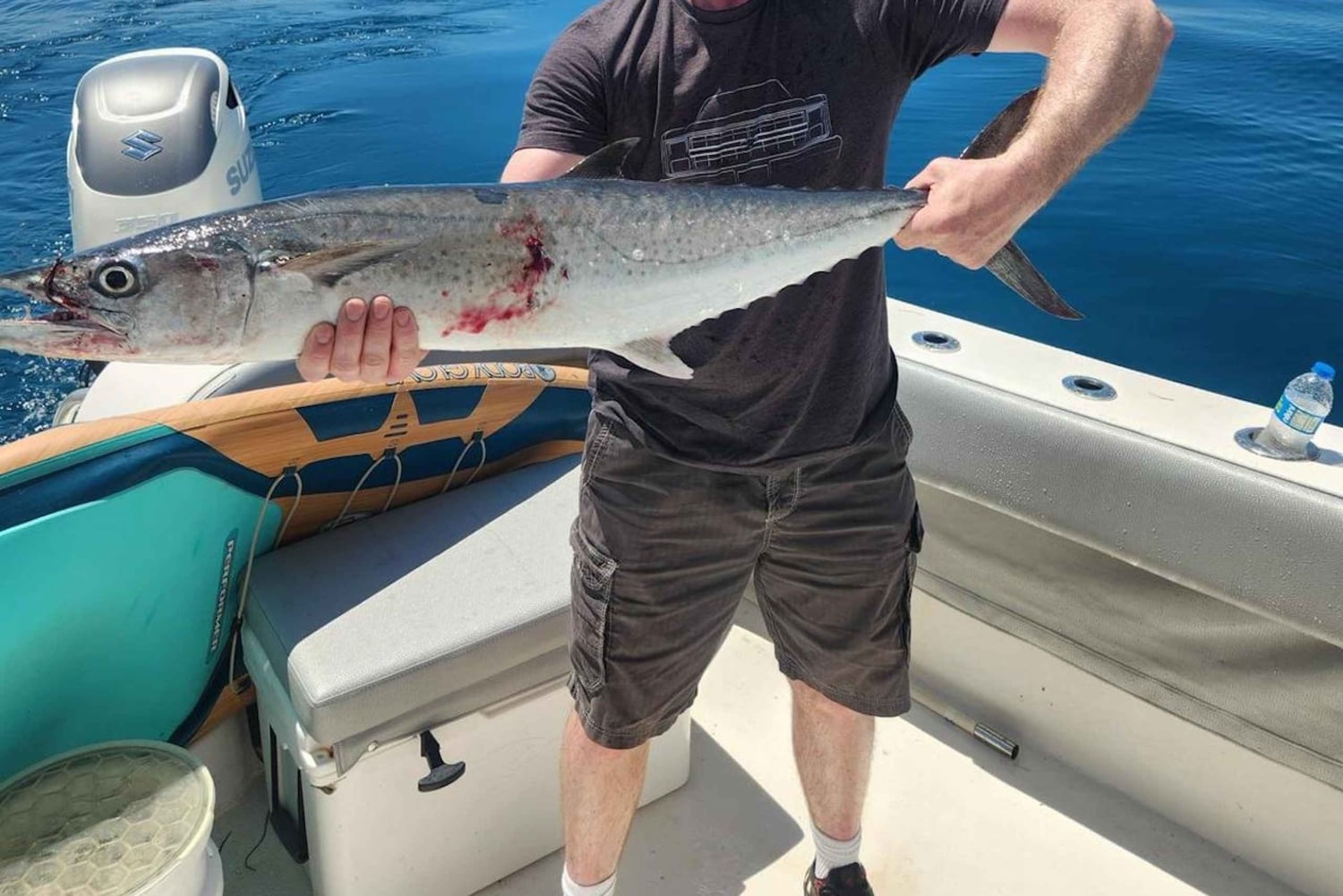 Ga op een privéboottocht vanuit Ceiba en geniet van een dag vol avontuur en ontspanning aan de oostkust van Puerto Rico. Kies tussen een vis- en snorkeltocht of een kustvisreis, beide aangevuld met een ontspannen strand- en eilandbezoek. Verken de ondiepe riffen in de buurt van de eilanden, waar de Atlantische Oceaan de Caribische Zee ontmoet. Ontdek een uniek gebied vol met zeeleven, perfect voor zowel beginners als ervaren deelnemers. Tijdens de kustvisreis kun je een tarpon of mahi mahi vangen. Deze reis is ontworpen door mariene biologen en visexperts en zorgt voor een zekere vangst in korte tijd, zodat je kunt genieten van het vissen en nog steeds tijd hebt om te ontspannen op het strand of wat eilanden te hoppen. Of je nu een adrenalinezoeker bent, een gezin dat iedereen tevreden wil stellen, of een groep vrienden met verschillende vaardigheden en hobby's, dit is de ultieme waterexcursie.Includes