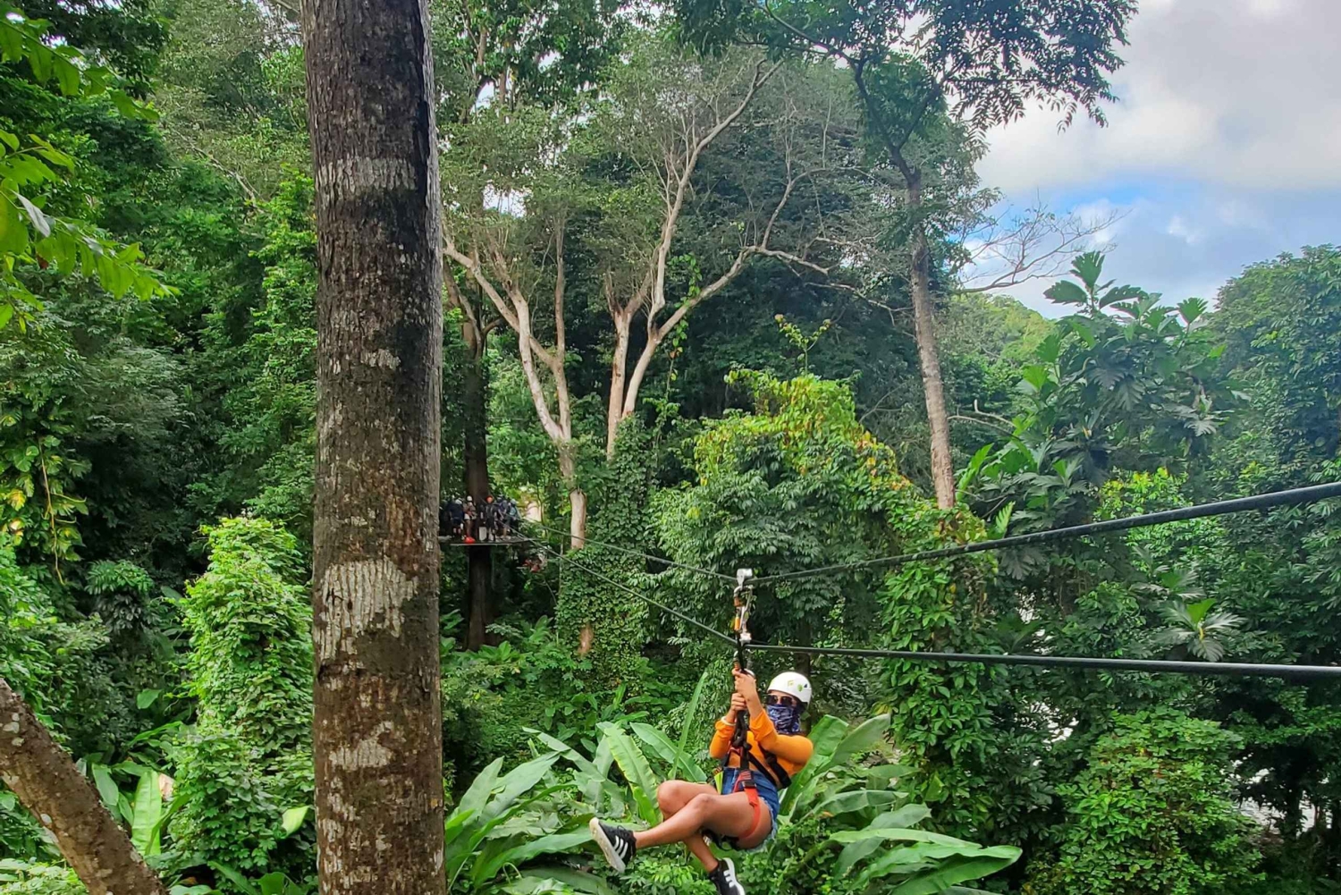 Bli med på en tur som tar deg til foten av El Yunque, det eneste fjellet nordøst i Puerto Rico. Dra på zipline-eventyr, ta en dukkert i et naturlig basseng, og nyt lokal mat og drikke på Luquillo-stranden. Når du ankommer, blir du utstyrt med hjelm og sele. Spenn deg fast for en tur nedover på 9 zipliner i karbonfiber og 2 rappeller. Etter en kort spasertur på 15 minutter hvor du kan lære mer om floraen i El Yunque, kan du kjøle deg ned med et hopp i et av de naturlige bassengene ved Mameyes-elven. Etter 2-3 timer i parken kan du ta turen til Luquillo-stranden og kioskområdet for å prøve lokal mat og drikke.Includes