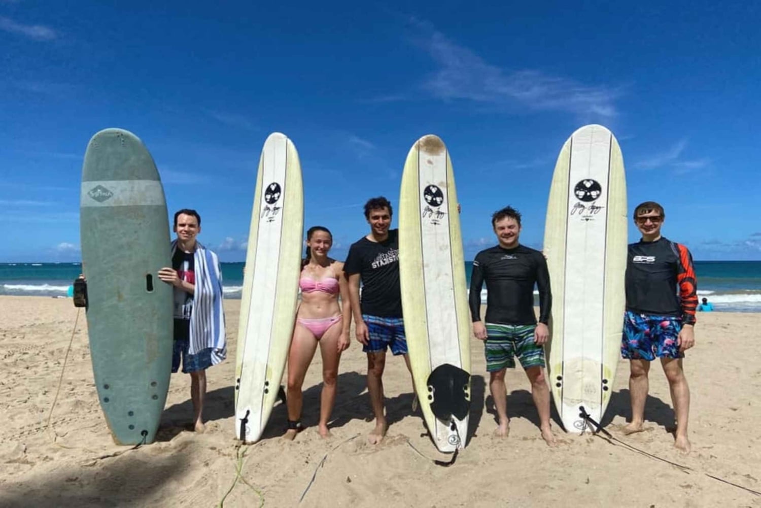 Zadzwoń lub napisz do instruktora, aby umówić się na spotkanie. Naucz się surfować w ciepłych wodach San Juan podczas lekcji surfingu dla początkujących. Spotkaj się z instruktorem i małą grupą i naucz się podstaw surfowania na plaży. Następnie wejdź do wody po pas i spróbuj złapać fale. Twój przewodnik jest zawsze w pobliżu, aby skorygować Twoją formę i upewnić się, że masz wspaniałe doświadczenie na wodzie. Naucz się surfować podczas wakacji w Puerto Rico. - Do tej lekcji nie jest wymagane doświadczenie w pływaniu - Uczestnicy w każdym wieku są mile widziani na zajęciach - Mała grupa oznacza więcej uwagi ze strony instruktoraIncludes