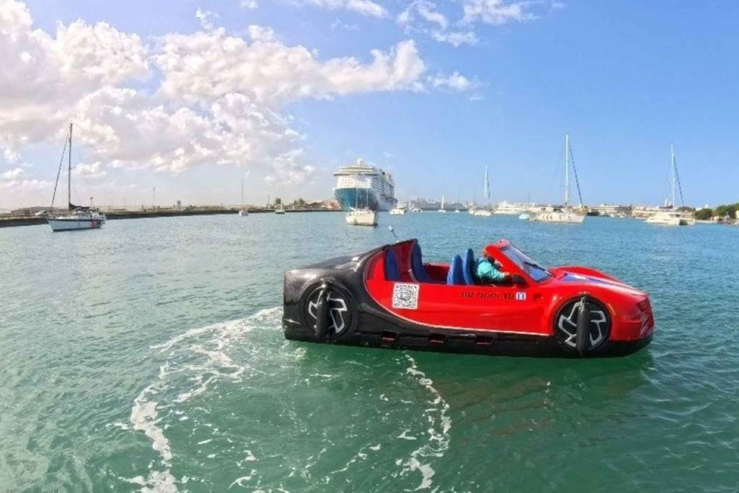 Poczuj dreszczyk emocji podczas VIP-owskiej przygody samochodem z napędem odrzutowym. Prowadź luksusowy samochód odrzutowy, który zachowuje się jak samochód sportowy — na wodzie! Płyń po krystalicznie czystych wodach Zatoki San Juan, podziwiając zapierające dech w piersiach widoki na kultowe zabytki, takie jak Stare San Juan, La Fortaleza i Castillo San Felipe del Morro. Niezależnie od tego, czy szukasz ekscytującej przejażdżki dla dwojga, czy pełnej zabawy wycieczki dla całej rodziny, znajdziesz samochód dostosowany do Twoich potrzeb. Poczuj przypływ adrenaliny, odkrywając wybrzeże w wyjątkowy i ekscytujący sposób. Ta atrakcja jest dostępna dla kierowców posiadających ważne prawo jazdy w wieku powyżej 21 lat oraz pasażerów w wieku powyżej 12 lat, co sprawia, że jest to idealna przygoda dla każdego.Includes