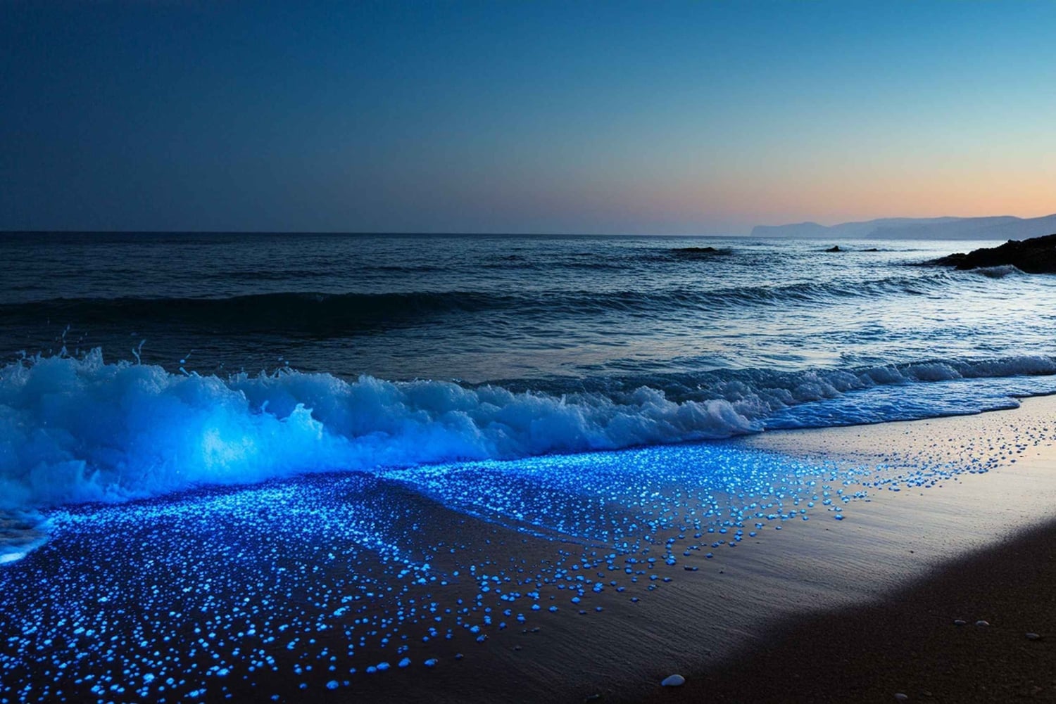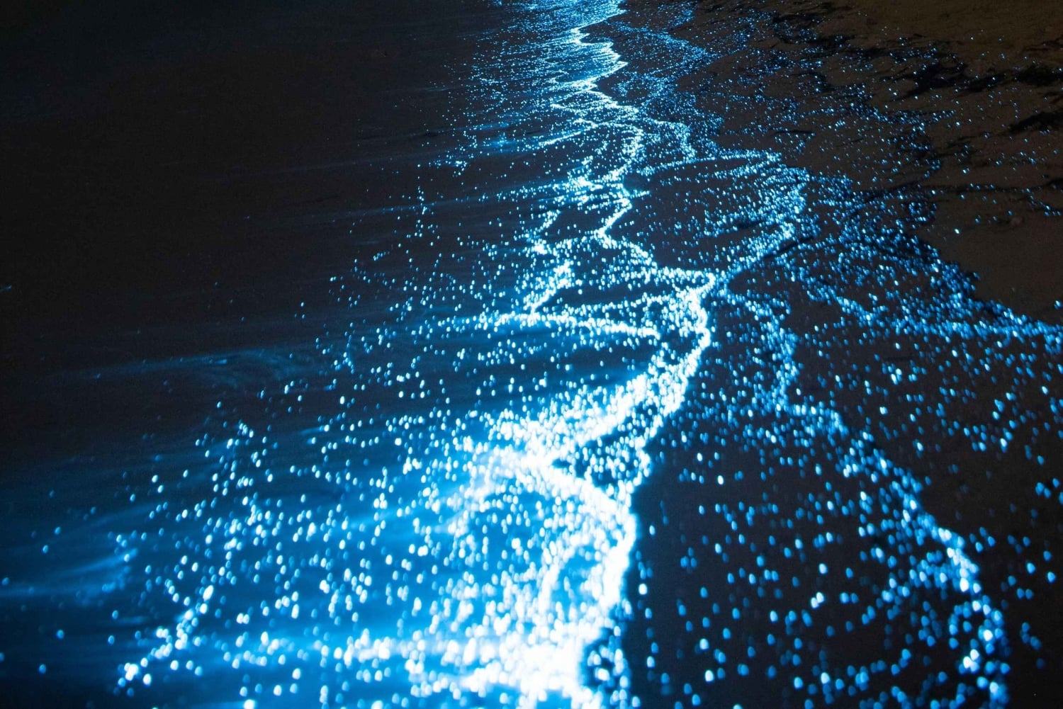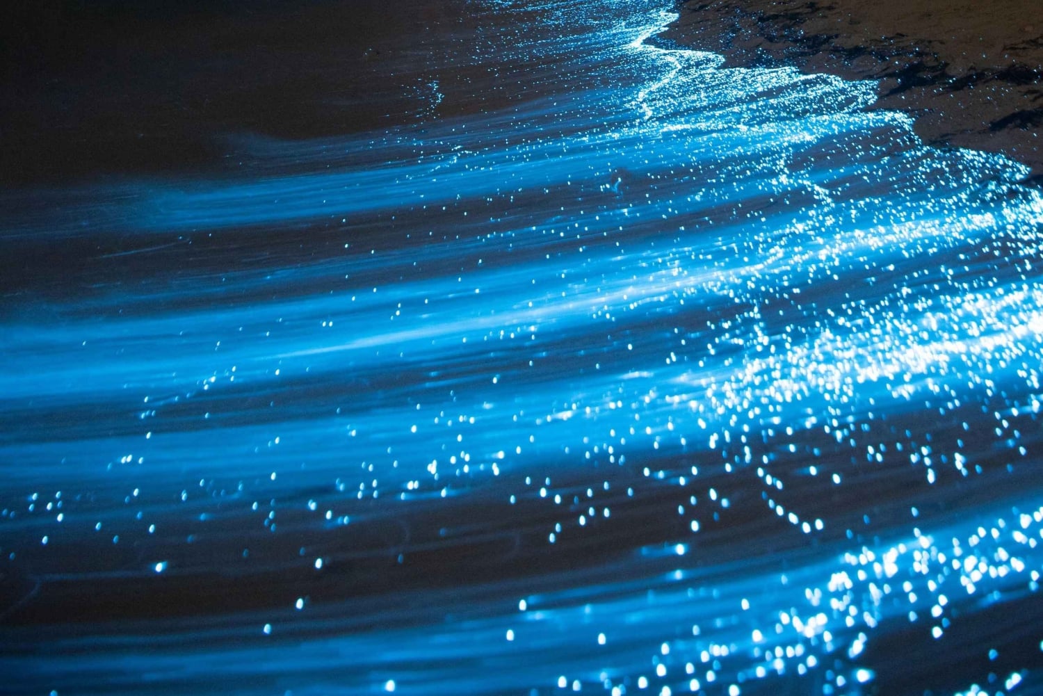 - Zobacz, jak niebiesko-zielone iskrzenie rozświetla się z każdym ruchem w świecących wodach.