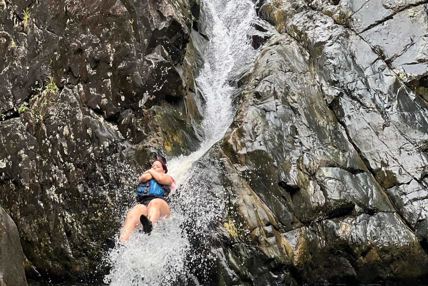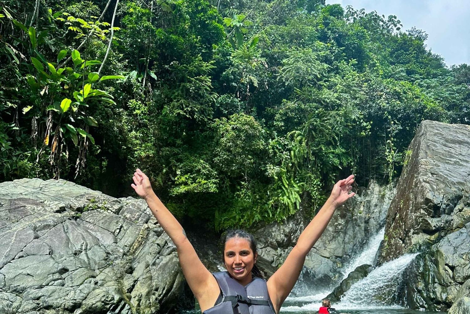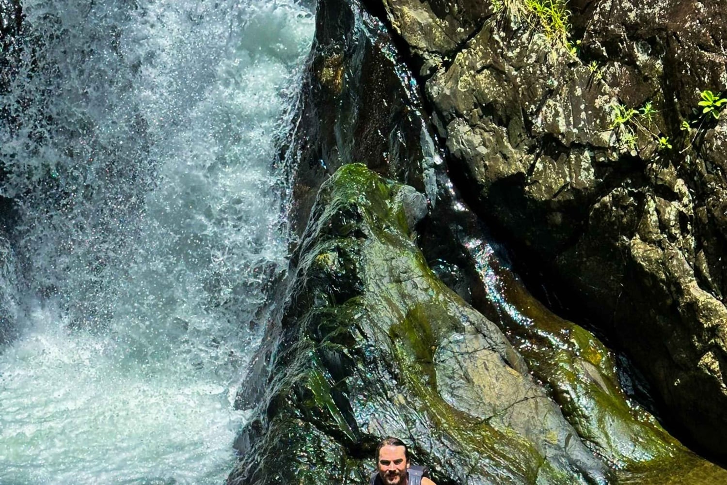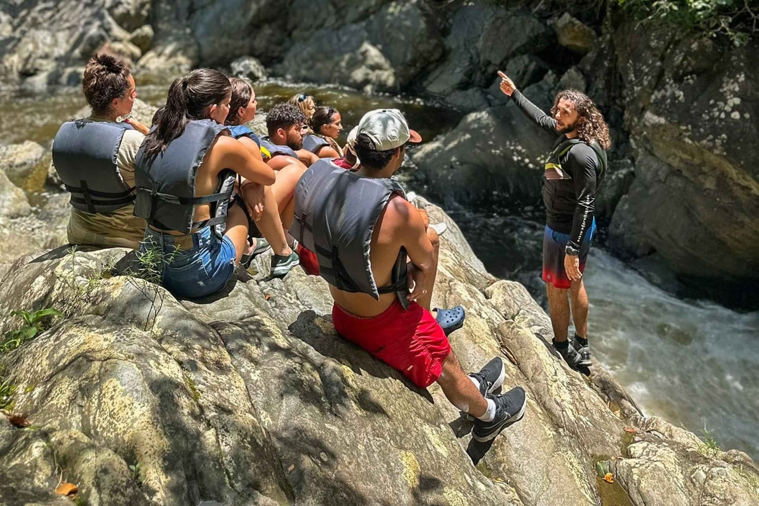Caminha por trilhos panorâmicos na selva, rodeado por plantas tropicais exuberantes e vida selvagem. Refresca-te com um mergulho refrescante sob cascatas deslumbrantes e experimenta a emoção de deslizar por escorregas de água naturais. Sentes-te ousado? Experimenta um salto de penhasco opcional ou um baloiço de corda sobre o rio (se o tempo permitir).