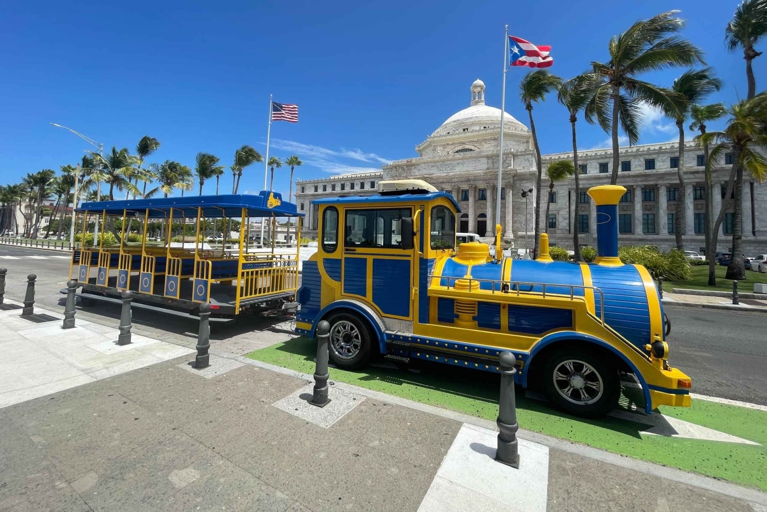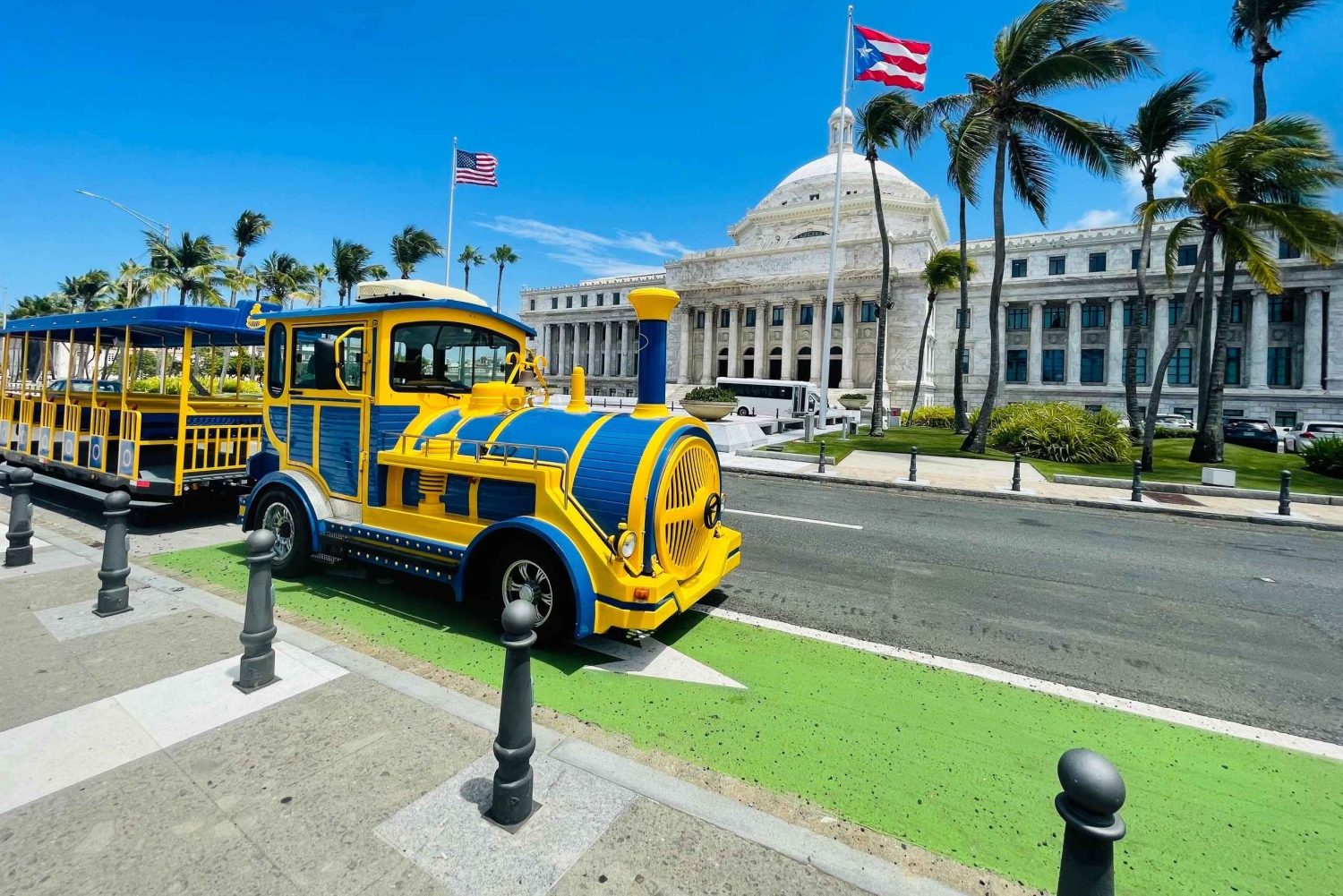 Kliver ombord på den enda spårvagnsturen i Puerto Rico! Ta inte bara en rundtur i Gamla San Juan – upplev det med stil ombord på vår spårvagn i vintagestil, den första och enda i sitt slag på ön! Perfekt för alla åldrar (lägsta ålder: 4), detta är det snabbaste, enklaste och roligaste sättet att utforska Puerto Ricos mest ikoniska stad. Varför du inte får missa den här turen Se mer på kortare tid – Glid förbi historiska fästningar, färgglada byggnader, livliga torg och den glittrande kusten – allt på under 2 timmar! ️ Live-guidad upplevelse – Vår vänliga guide ger liv åt 500 års historia, kultur och dolda pärlor medan du åker. Fotostopp ingår – Snabba natursköna stopp vid: Capitolio de Puerto Rico (15 min) Plaza Ventana del Mar (20 min) Plaza Colón (1 min) Ikoniska sevärdheter du kommer att se (kör förbi): Plaza Colón Antiguo Casino de Puerto Rico Casa de España Presidenternas promenad Plaza Rafael Hernández Marín Monumentet al Lamento Borincano Puente Dos Hermanos Balneario El Escambrón Förbättra din upplevelse med exklusiva tillägg Ta din tur till nästa nivå med valfria tillägg (tillgängliga under bokning eller på plats): Fotopaket – Fånga minnen med proffs- eller digitala bilder Lokalt förfriskningspaket – Håll dig sval med vatten, läsk eller snacks Souvenirutrustning – hattar, solfjädrar och souvenirer för att minnas din tur ️ Regn-Ready Kit – Poncho + handduk om det regnar ️ Kombinationserbjudanden – Lägg till en zipline, en mattur eller en strandutflykt! ✅ Bra att veta Mötesplats: Plaza Colón vid hjärtskylten 'I LOVE SJ' ⏰ Kom 30 minuter tidigare Minimiålder: 4 år Checka in genom att sms:a eller skicka ett meddelande till oss via din bokningsapp Den här unika upplevelsen blir snabbt slutsåld! Sittplatserna är begränsade – boka nu och gör ditt besök i Old San Juan oförglömligt!Includes